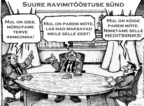 Oled kurb? Võta aga tablett sisse ja kohe tunned end paremini… Oled stressis või depressioonis? Pole probleemi, sulle lubatakse koheselt, et kui tarbid mõne ravimitööstuse reklaamitavad imeravimit, siis sinu mured kaovad. Ei saa öösel magada? Pole probleemi, joo seda reklaamitud imeravimit ning siis magad nagu beebi, jne, jne. Nii see ravimitööstus toimib.