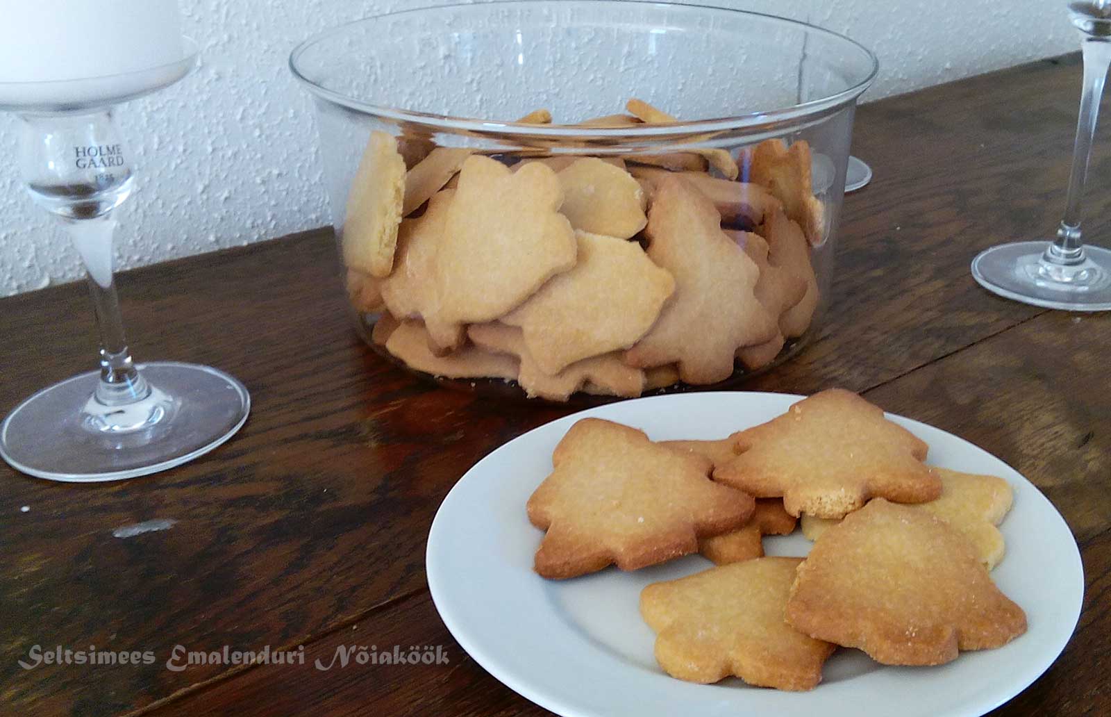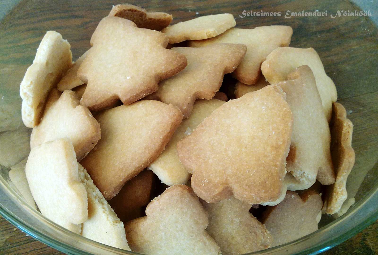 Vahusta või suhkru ja maitseainetega kuni või ja suhkur on moodustanud mõnusa ja õhulise massi. Edasi sõtku juurde soodaga segatud jahu ja kui taigen tundub natukene “tatine”, lisa vähese koguse kaupa sõtkumise käigus juurde jahu. Rulli taigen lahti ca 0,5 cm paksuse kihina, lõika küpsisevormidega küpsised välja. Kuna taignas pole kasutatud muna, siis küpsised väga ei kerki. Kui paned veidi soodat, siis see aitab veidikene küpsiseid kergitada, aga mitte oluliselt. Aseta küpsised eelnevalt määritud või küpsetuspaberiga kaetud ahjuplaadile ja küpseta eelkuumutatud ahjus 180C juures ca 10 -15 minutit või seni kuni küpsised on kuldpruunid. Mõnusat nautimist.