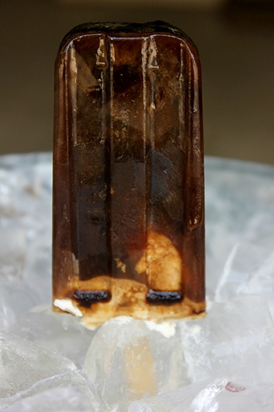 Vahusta vahukoor suhkruga kuni koor pakseneb. Aseta lusikatäis vahkukoort jäätisevormi ning vala sellele peale kali, külmuta vähemalt 6 tundi.