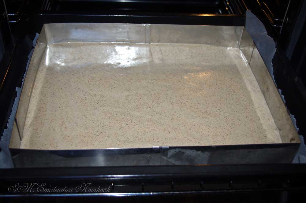 Kui oled segu ühtlaselt ahjuplaadile valanud, pane see 15-20 minutiks ahju küpsema, et põhi saaks mõnusalt valmis.