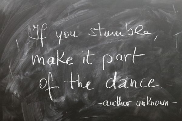 Juhul, kui asjad pole läinud nii nagu oled lootnud, ära keskendu negatiivsele, kuna igas olukorras on ka positiivne külg. Sul võib see märkamata jääda…. Positiivse üles leidmine aitab sul ka negatiivsega hakkama saada. Ehk nagu kiri siin pildilgi ütleb, et kui sa komistad, muuda see tantsu osaks! Usu, et kõik juhtub põhjusega.