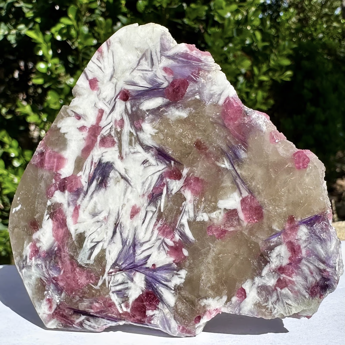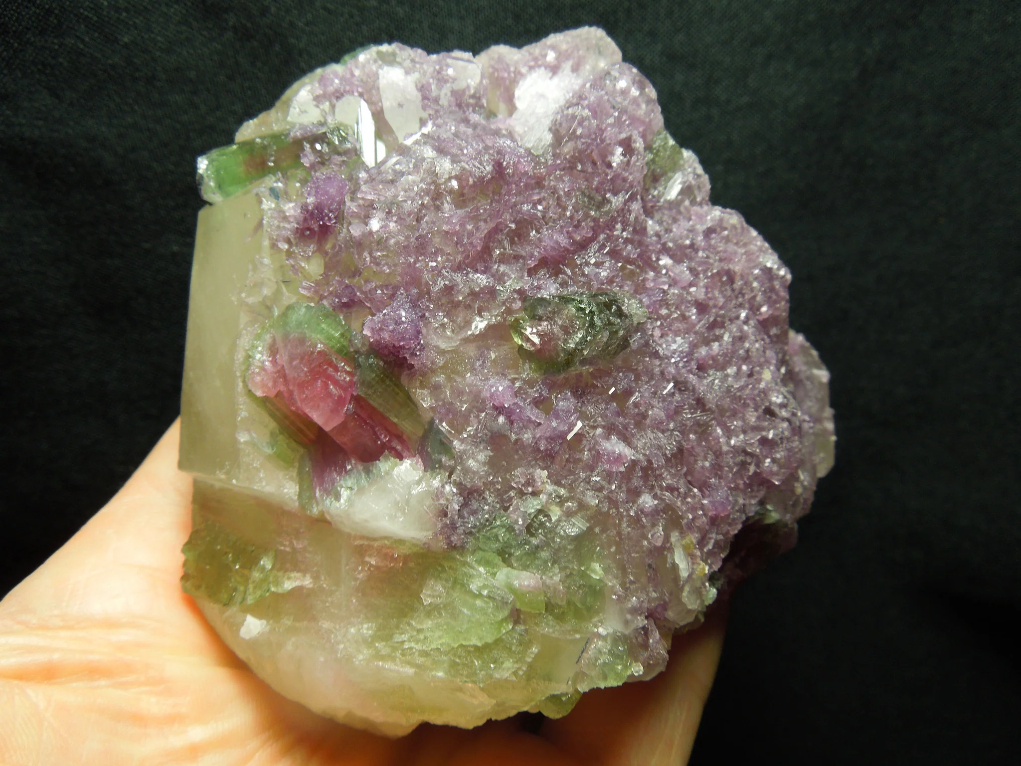 - Roosa turmaliin lepidoliidis – Roosa turmaliin võib kasvada koos lepidoliidiga, moodustades armastava, rahustava ja toetava kristallikoosluse.