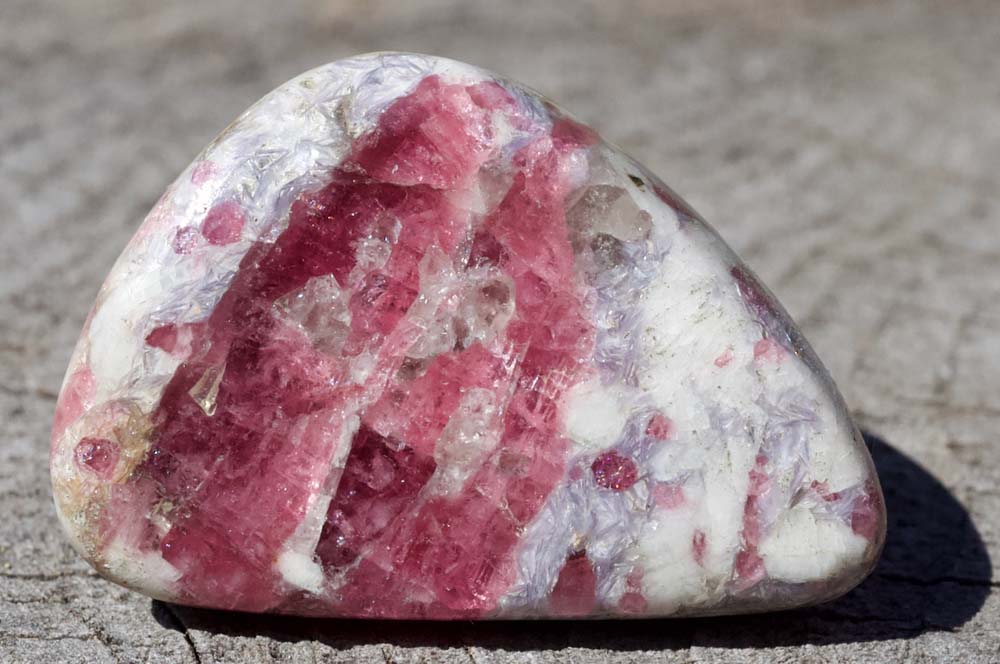 - Rubelliit lepidoliidis – tumedam punane või roosa turmaliin (rubelliit), mis kasvab koos lepidoliidiga. Need kristallid pakuvad sügavat armastavat toetust ja aitavad saavutada sisemist tasakaalu ning kohalolu.