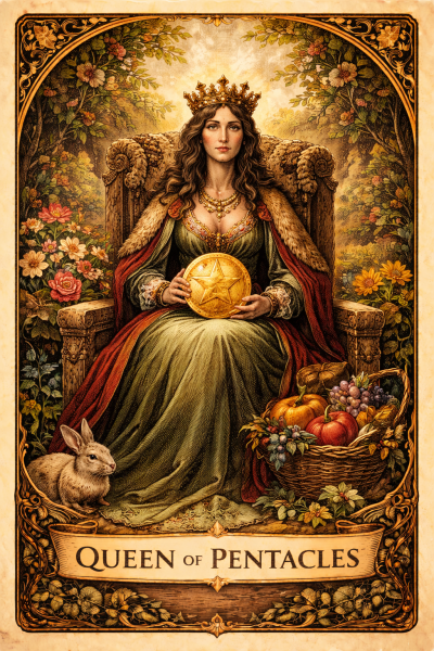 Oled jõudnud oma külluse teekonna ühte määravasse etappi. Selles punktis kehastab Müntide kuninganna maa elemendi sügavat väärtustamist ja kutsub sind sama pühendumusega sellele vastama. Süüta roheline küünal ja aseta Müntide kuninganna kaart enda ette, jälgides tema hoiakut ja suhtumist rikkusesse.