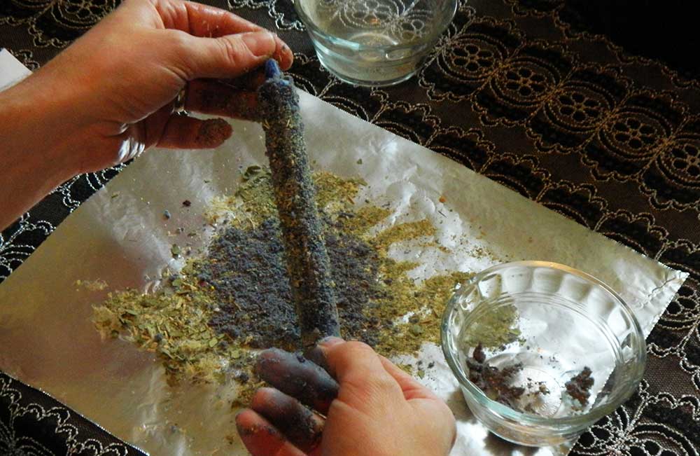 Küünalde “riietamiseks” kasutatakse erinevaid taimi, ürte, seemneid. Kõik oleneb jällegi sinust ning rituaali eesmärgist. Paljud küünlamaagia kasutajad eelistavad küünalde riietamisel kasutada lõhnatuid seemneid, sest mitu erinevat lõhna võivad lihtsalt maagi jaoks konflikti tekitada. Kui sinu loits või rituaal nõuab ka küünla “riietamist”, siis ei ole sul vaja teha muud, kui eelnevalt õlitatud küünalt rullida selleks ettevalmistatud (nt purustatud/jahvatatud) taimedes, ürtides, seemnetes jne, kuni küünal on kenasti ning tervenisti kaetud.