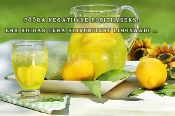 kui elu toob sulle sidruneid, siis tee sellest limonaadi. Kõik on võimalik, kui annad endale võimaluse ja vähegi endasse ja oma võimetesse usud. Need „sidrunid“, mida sulle saadetakse või mida sa elult saad, on kõik kogemused, mida sa pead läbi tegema oma arenguks ja kasvuks. Nüüd on ainult küsimus selles, mida sa nende sidrunite aka kogemustega peale hakkad ja kuidas neid oma edasises elus rakendad?
